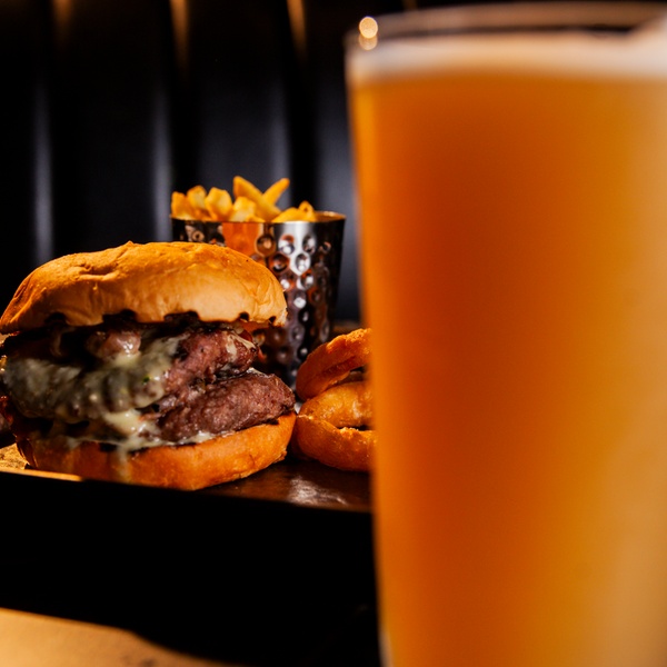 The Classic Burger: Two 4oz smoked brisket patties, onion jam, American cheese.