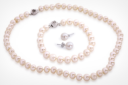 - Necklace and bracelet pearl size: 7-8mm; earrings: 6-7mm
